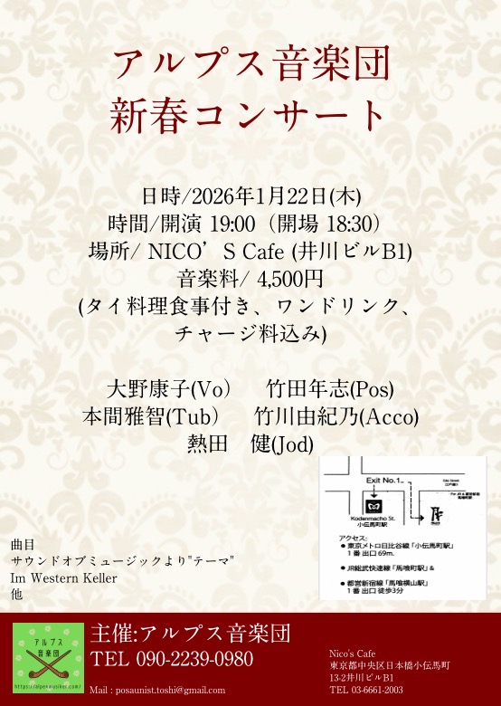 アルプスの新春コンサートにぜひお越しください!